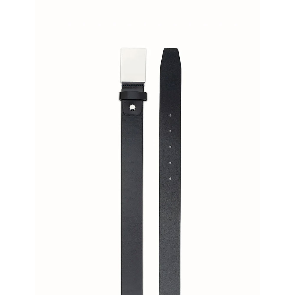 Modern minimalist belt with a wide matte silver buckle. Ideal for a clean, stylish, fashion-forward look.