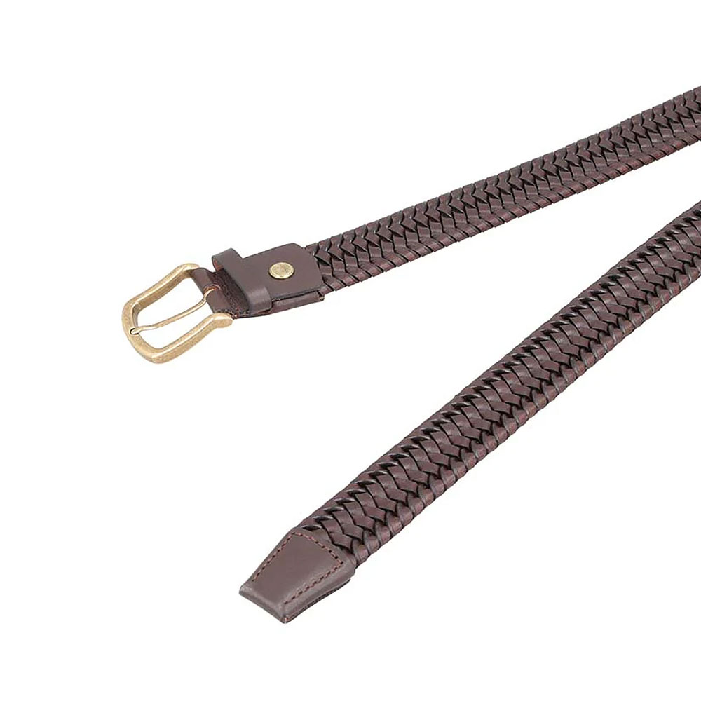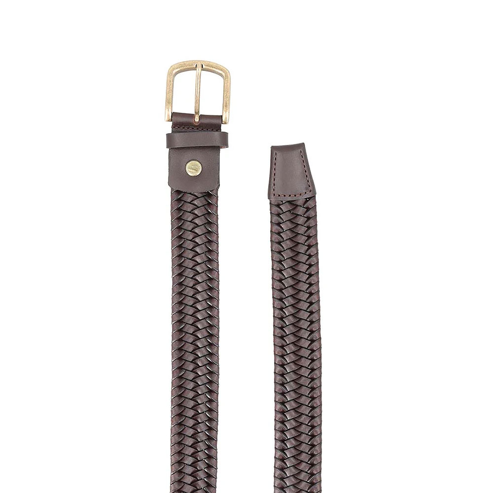 Comfortable braided design in rich brown with a gold buckle. A perfect choice for smart-casual outfits.