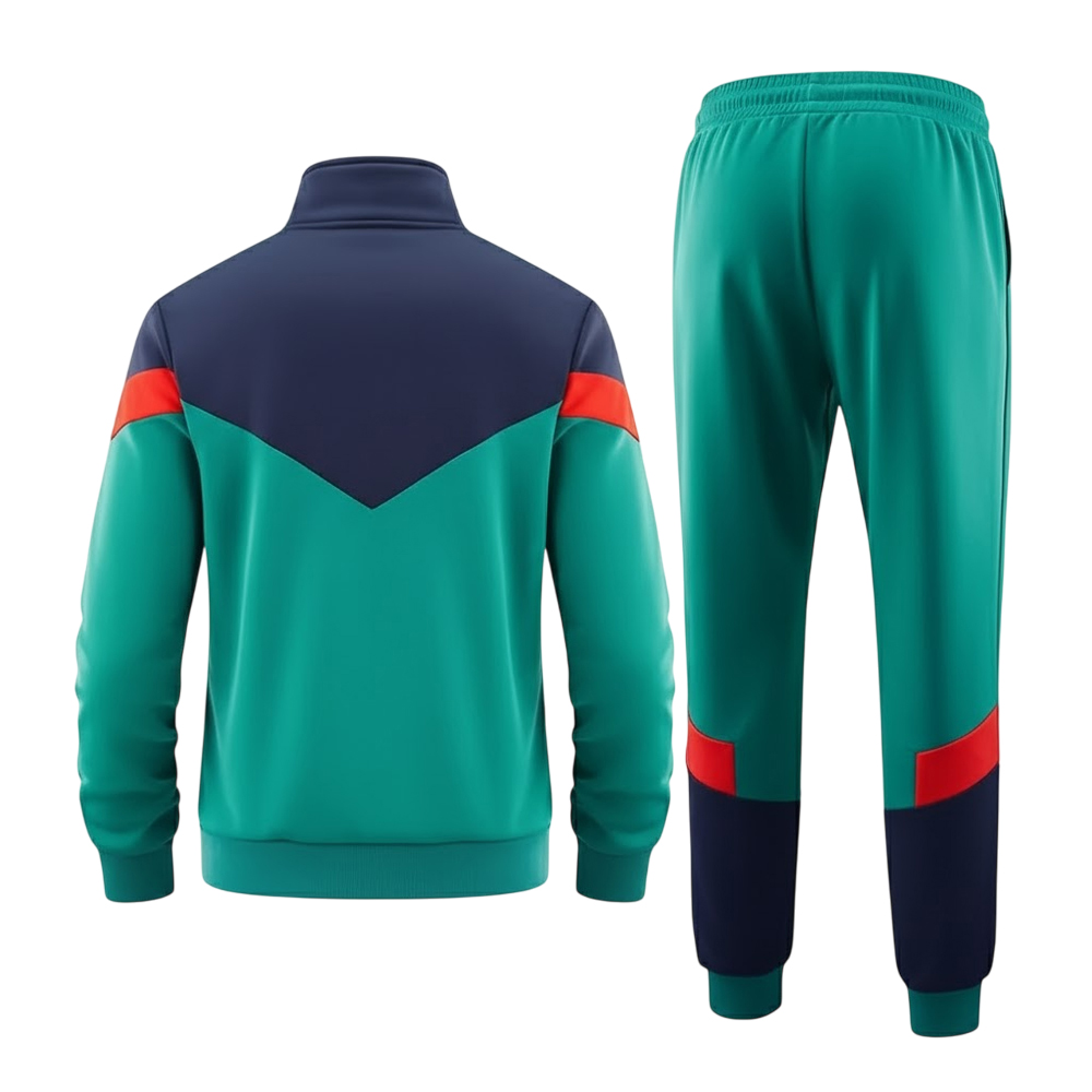 Eye-catching teal with navy and red accents β this color block design combines boldness and comfort for standout athletic fashion.